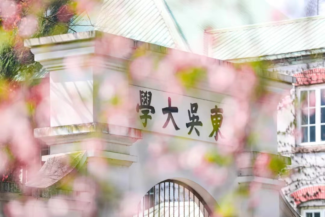 百年紅樓處樹木蔭翳,縷縷柔光穿樹而來,將斑駁墻體也染上明媚色彩。東吳門前的早櫻爭艷、教學(xué)樓前的海棠盛放、幾枝紫荊也在熱烈陽光中炸開鮮艷的花苞,爛漫花枝描摹出江南春日的五彩繽紛。而每當夜色低垂,滿樹花朵在燈光下更顯得影影綽綽,人從花前過,弄花香滿衣。