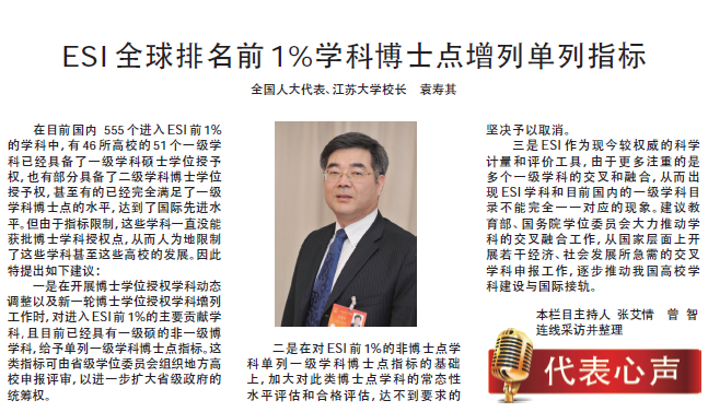《新華日?qǐng)?bào)》:ESI全球排名前1%學(xué)科博士點(diǎn)增列單列指標(biāo)